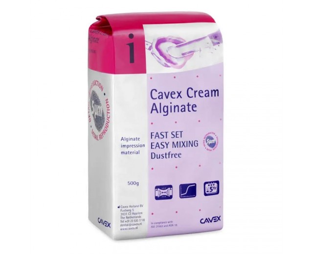 Alginato Cavex de última generación. Reúne una precisión de 5 μm, una alta resistencia al desgarro y una excelente elasticidad, las propiedades de este material de impresión dental desafían las de la calidad de la silicona.